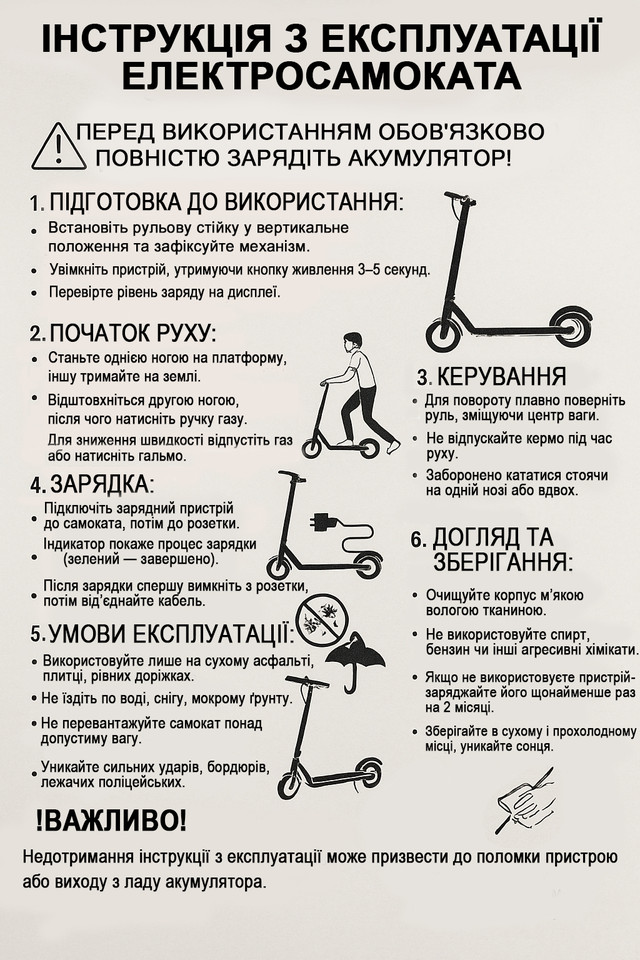 - Електричний запас ходу: 8.0Ah 20-25 км