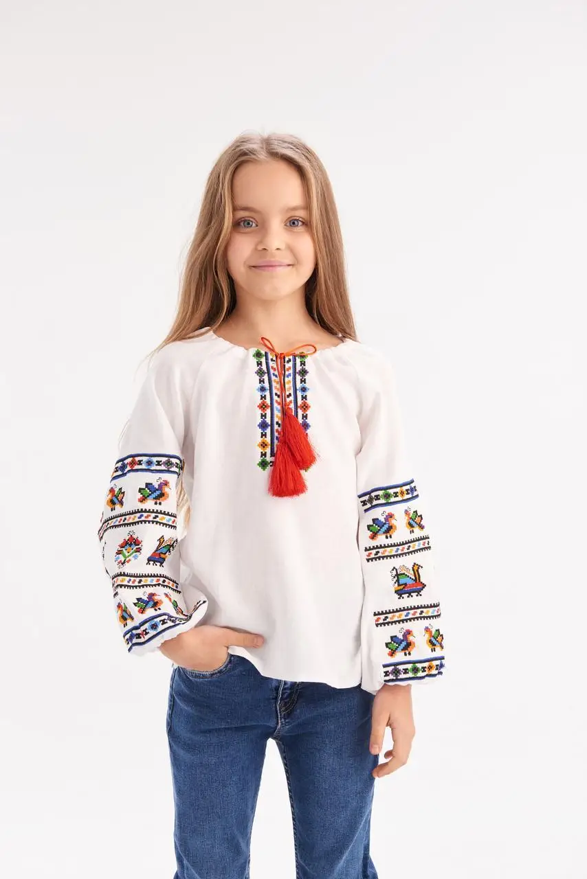 Ишиванка для дівчинки "Подільська", дитяча біла блуза з вишивкою в етно стилі